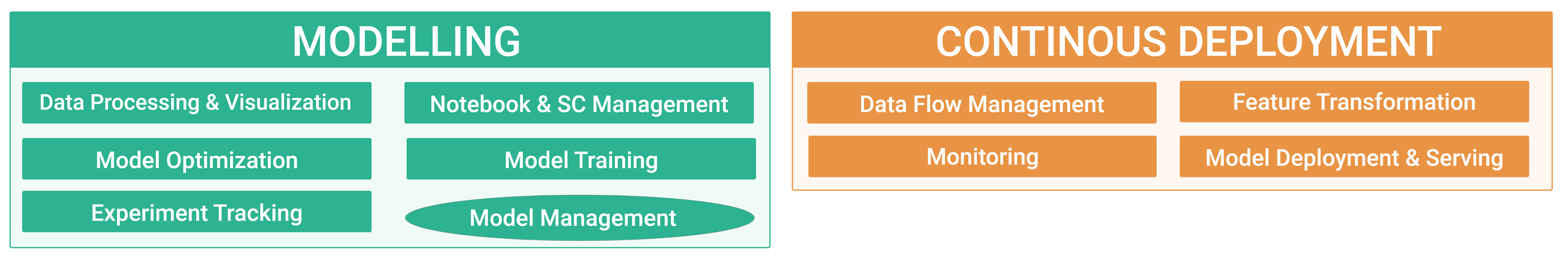 Continuous Deployment: All tasks related to the "Ops" part of MLOps - launching, monitoring and securing productive models.