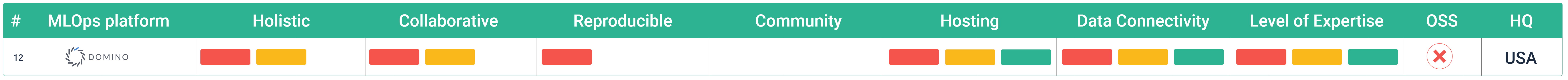 Community: We see access to community content as increasingly relevant, as more and more datasets, code based functions and libraries are available. GitHub has been a good source for code, so does Kaggle and other code / project hosting platforms. Nevertheless, we would like to see a direct use of community synergies in a MLOps platform. The rule: one bar for each sharable ML element within the MLOps platform (outside of the team!).